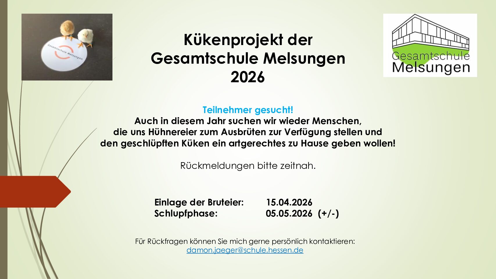 „Kükenprojekt 2026“ an der Gesamtschule Melsungen!