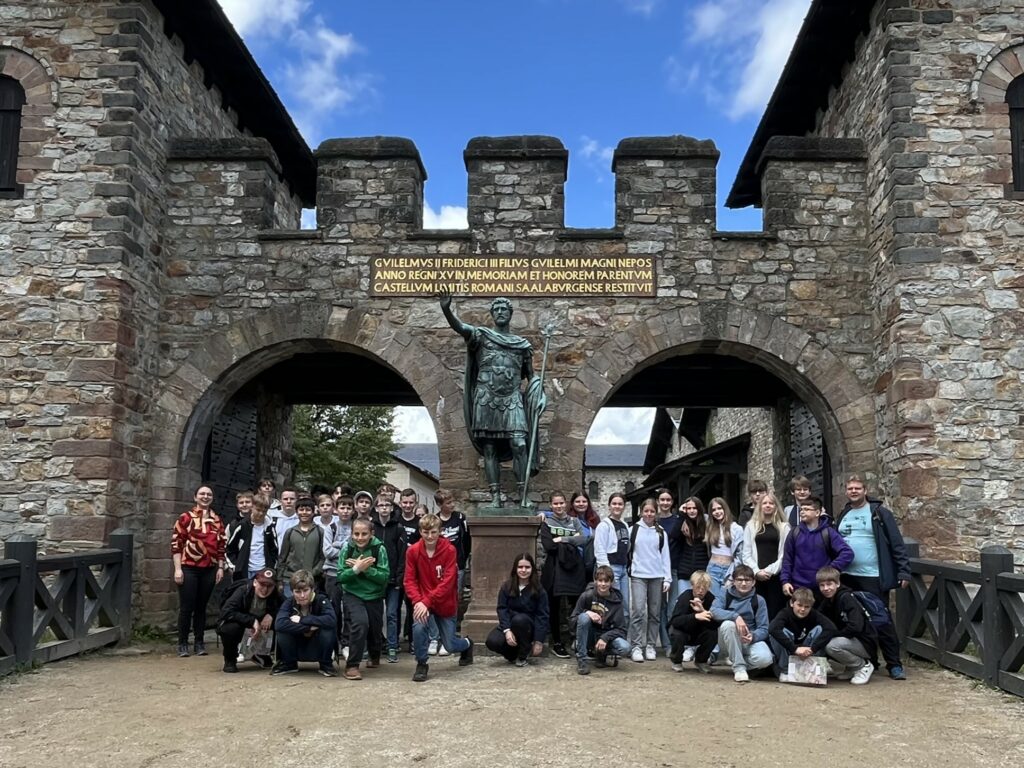 Als wir ankamen, managten die Lehrer alles, sodass wir schnellstmöglich in das Kastell rein konnten. Danach durften wir uns zunächst für ungefähr eine halbe Stunde frei bewegen und umschauen, wobei wir auf viele fremde Klassen trafen und viele eifrig für ihre Präsentation weiter übten.