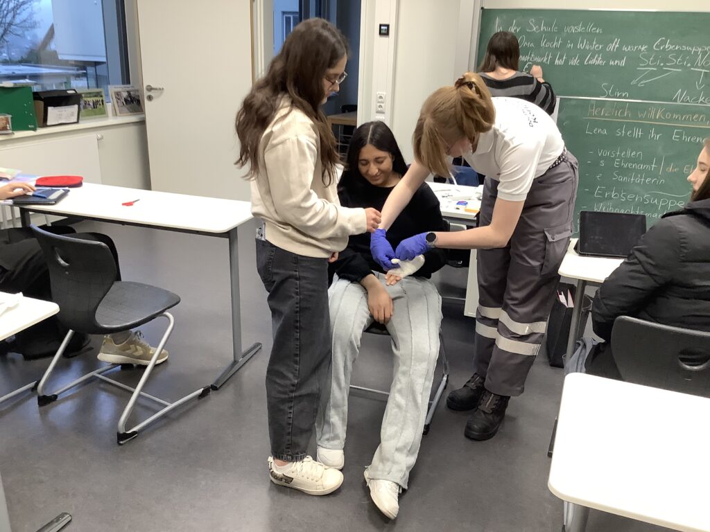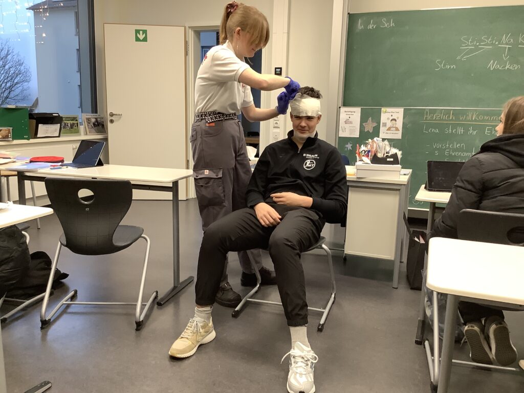 Schnell wurde der Wunsch laut, einen neuen Termin zu finden, damit Lena die Möglichkeit hat, mehr über ihre Tätigkeit beim Deutschen Roten Kreuz in Körle / Guxhagen zu berichten. Das ließ sich die Schülerin nicht zweimal sagen. Zwischen Präsentationsprüfung im November und Mathearbeit im Dezember fand sie Zeit, um erneut in die IK 1 zu kommen.