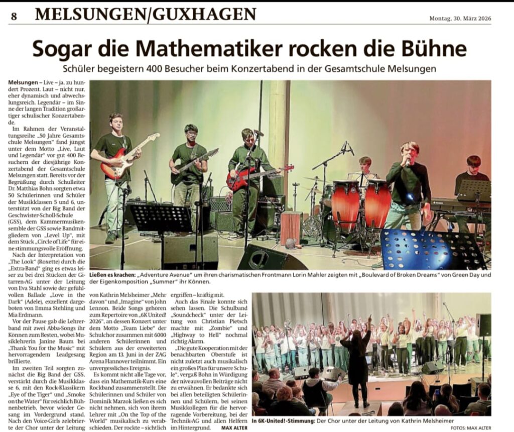 Unter folgendem Link finden Sie einen HNA-Artikel zum tollen Schulkonzert der Gesamtschule Melsungen: