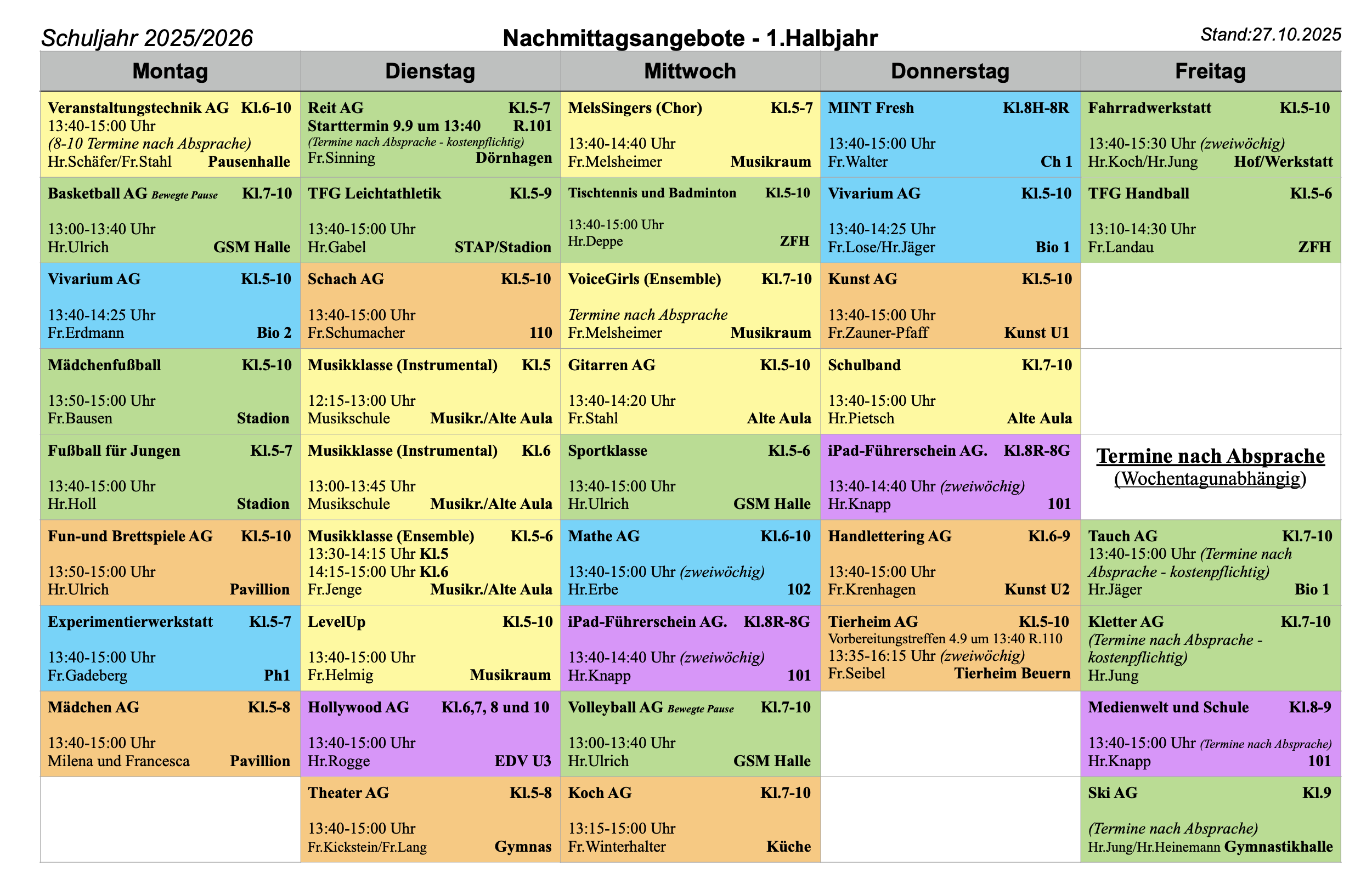 Hier findet ihr verschiedene Angebote und AGs, die ihr gerne in Anspruch nehmen könnt.
